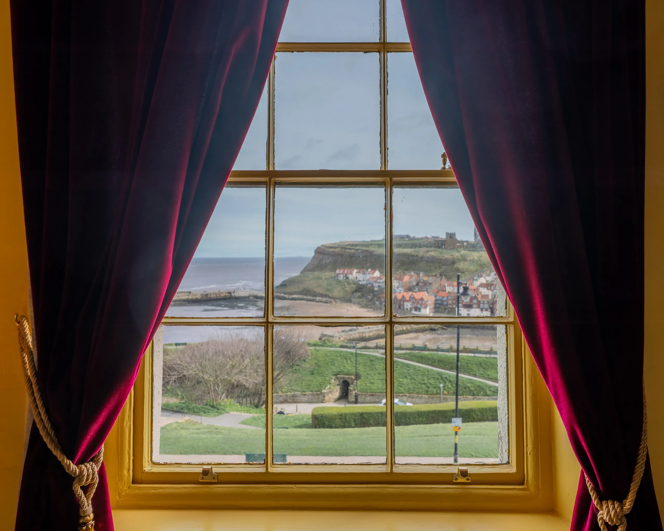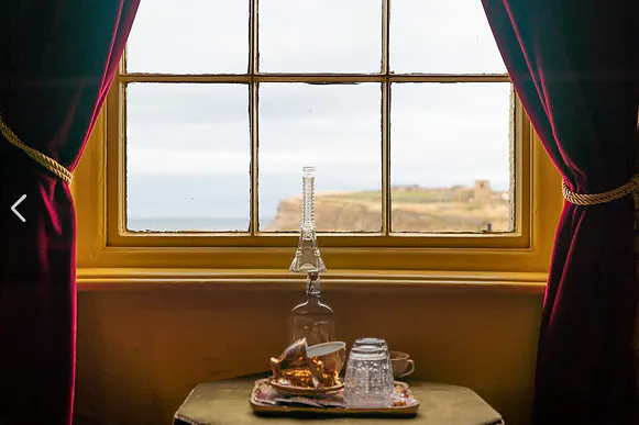 Romance is sacred... Views across the harbour to the sea and Whitby Abbey on the horizon. Table by the window for breakfast or just whiling away the time, looking at the view.